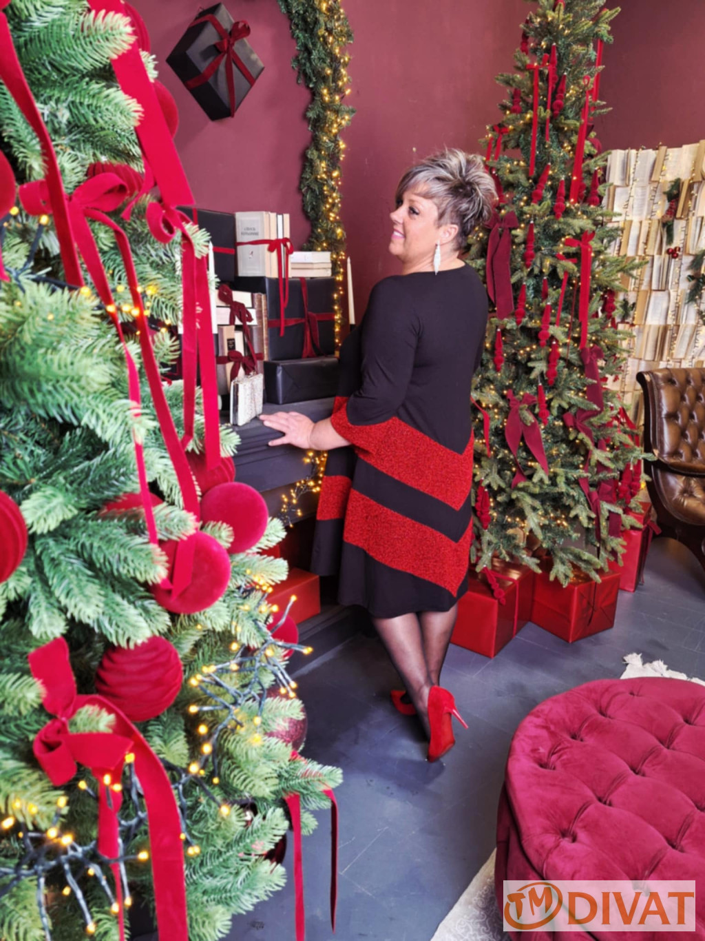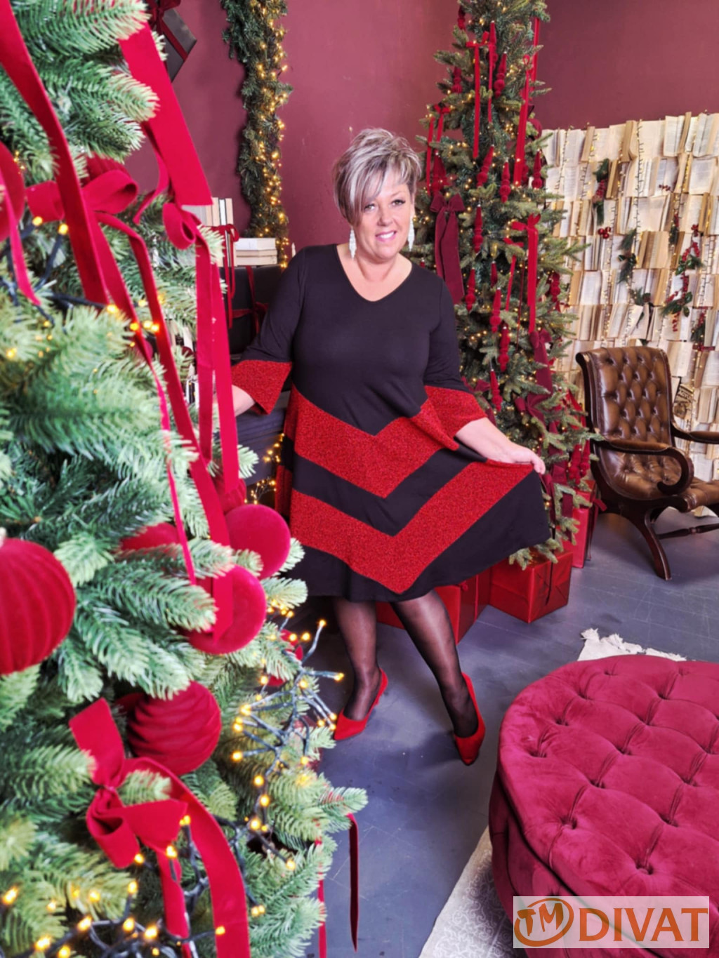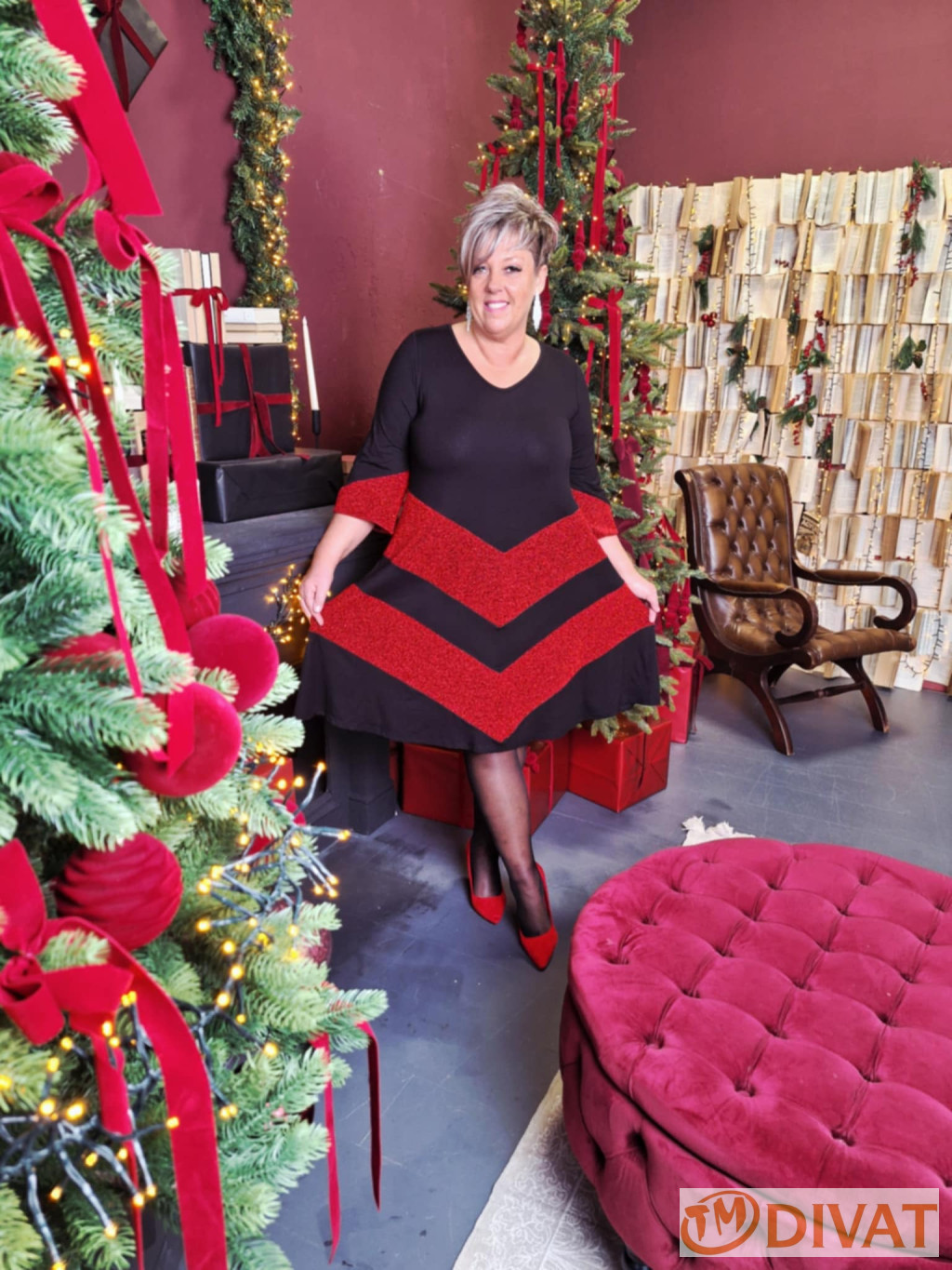 Stella ruha fekete-piros lurex betéttel.