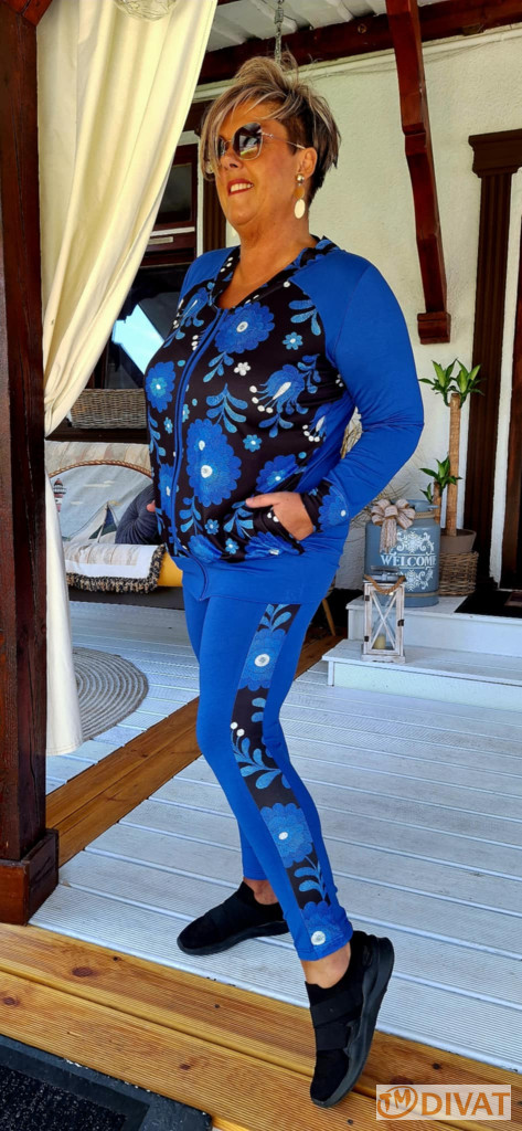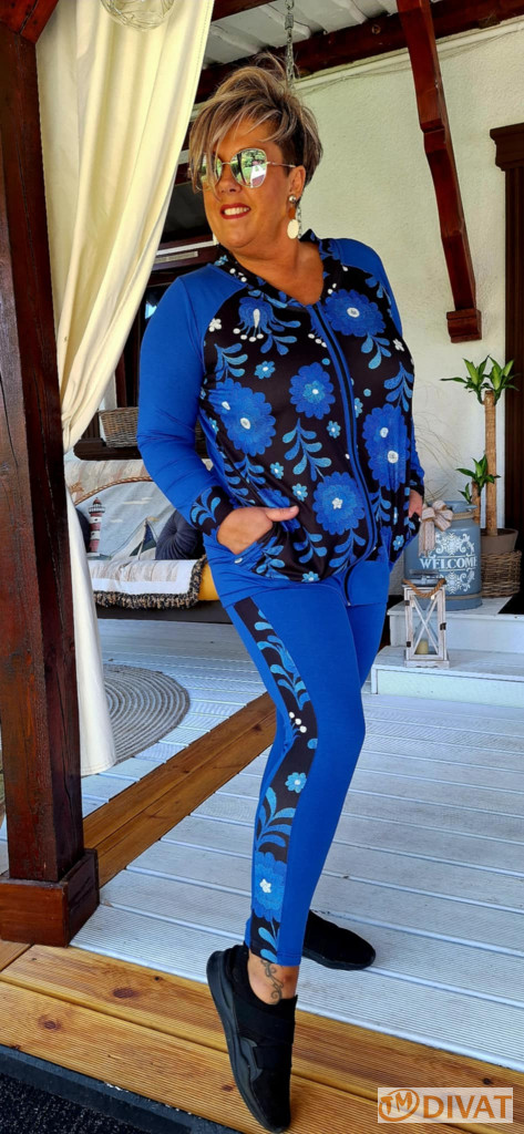Királykék alapon gyönyörű matyó mintás szabadidő szett pamut-viszkóz anyagból.