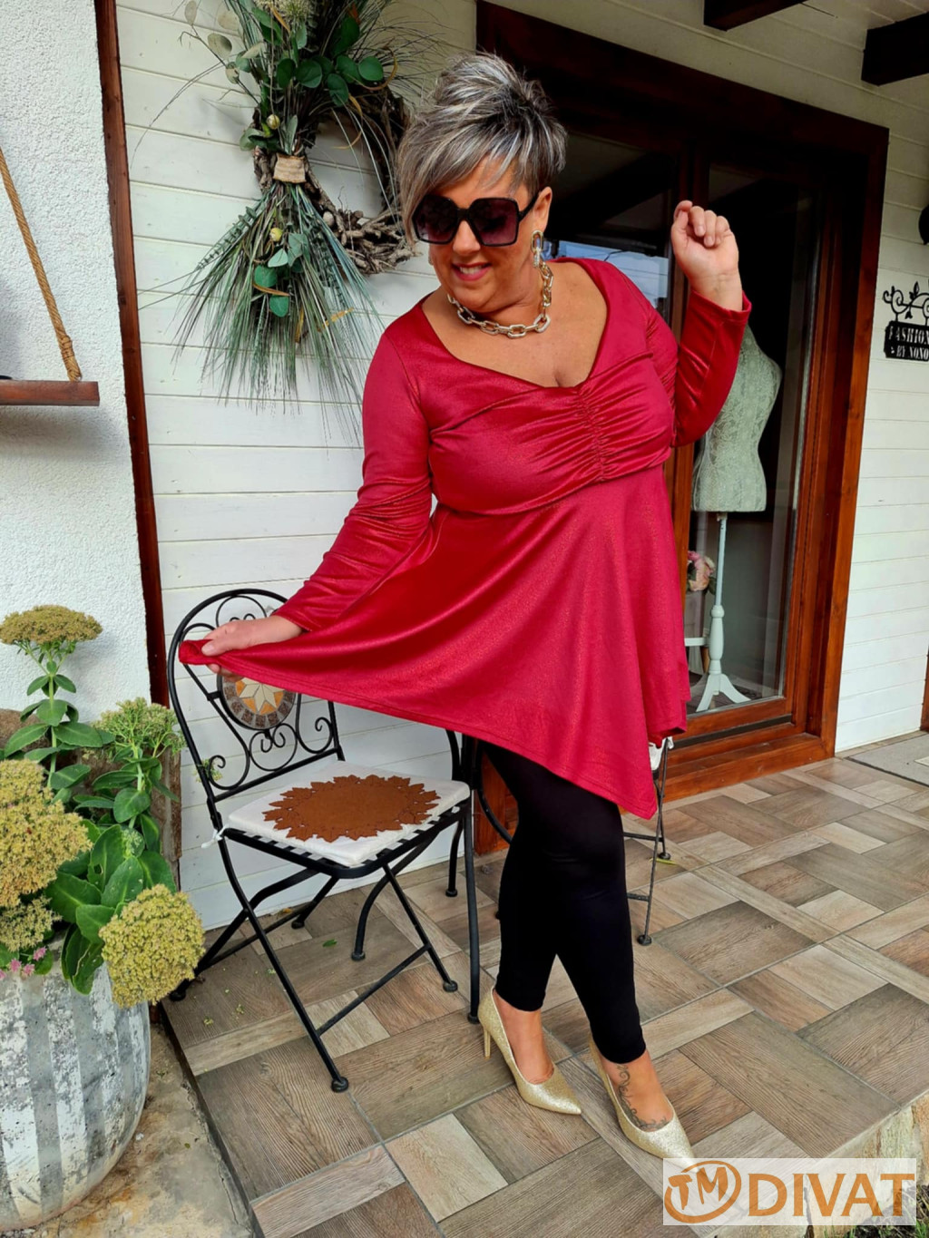 Fashion by NONO - Dália mellnél húzott extrán "A" vonalú burgundy tunika