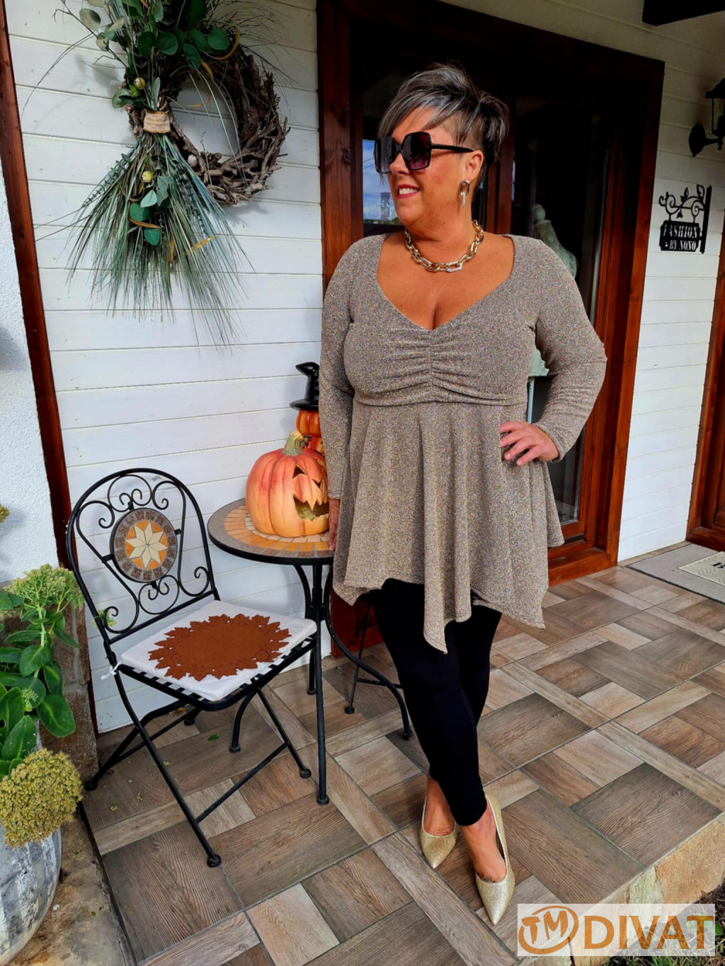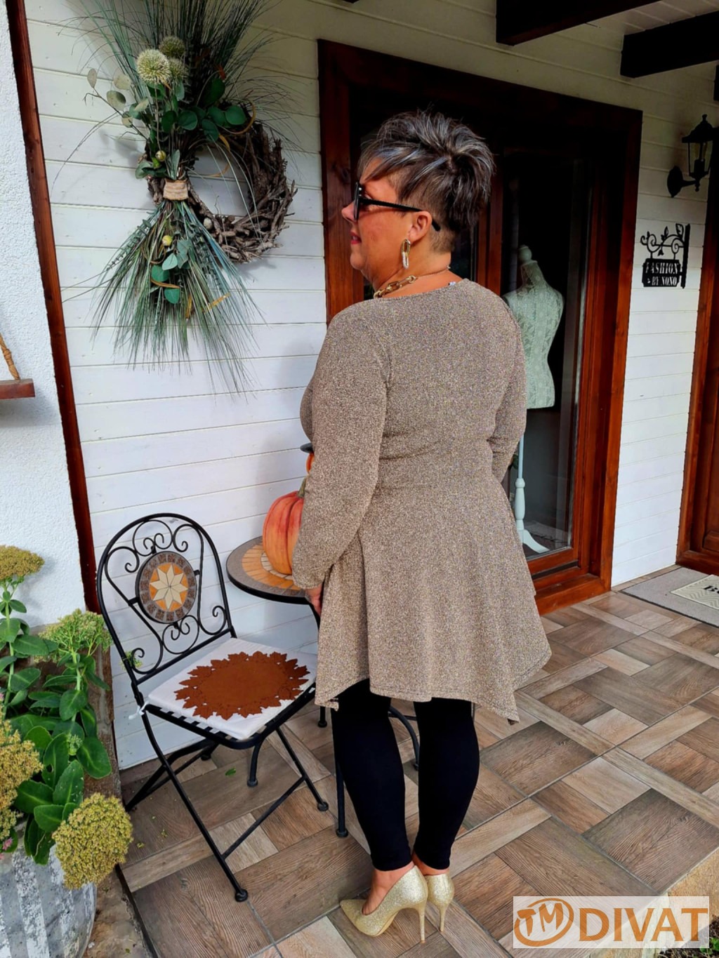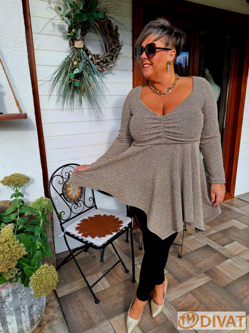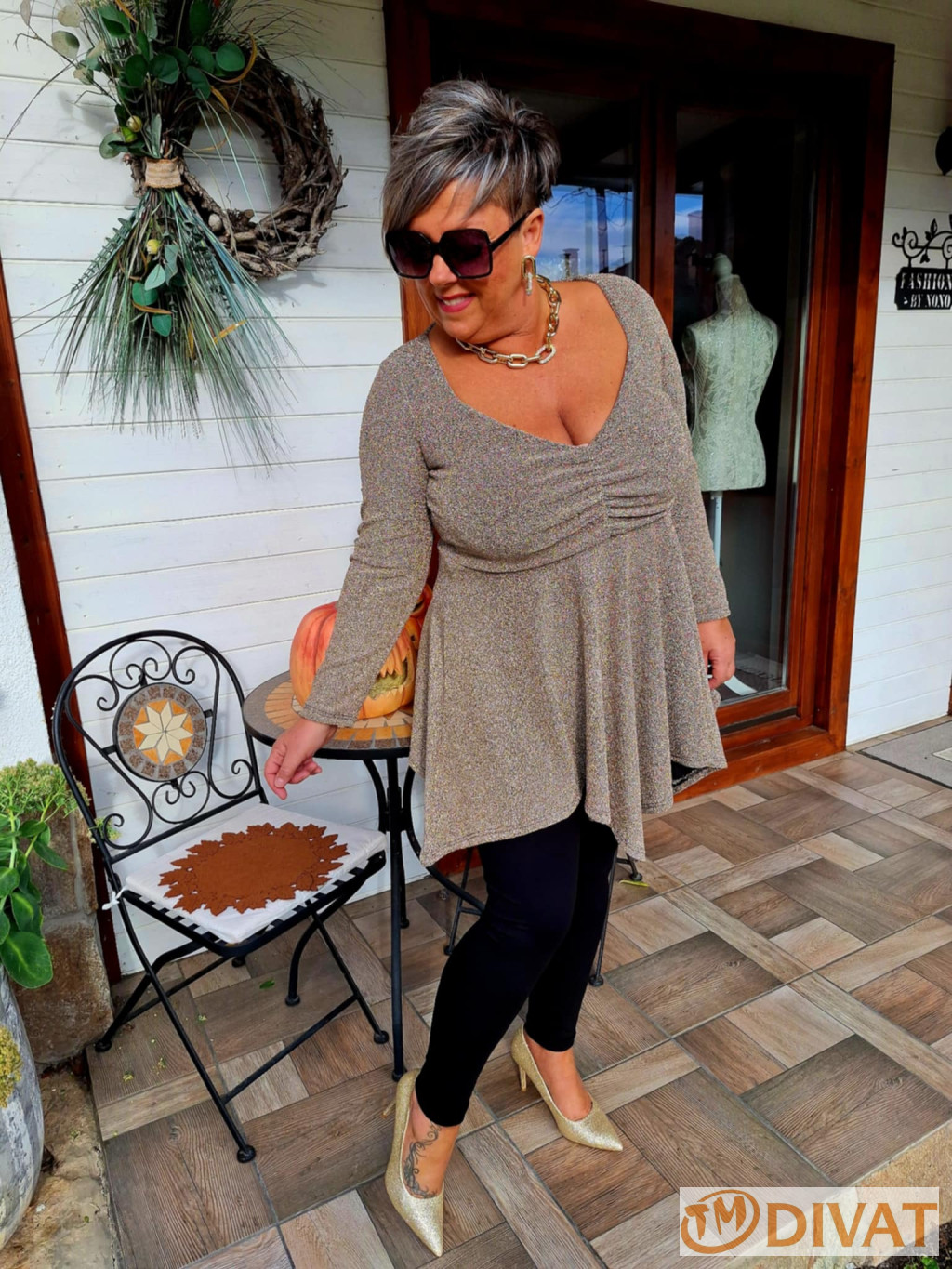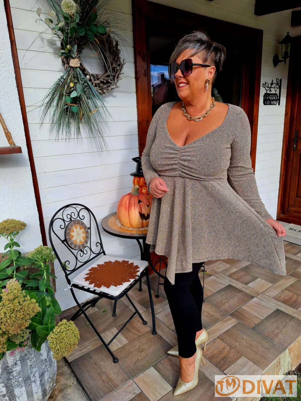 Fashion by NONO - Dália mellnél húzott extrán "A" vonalú arany lurex tunika